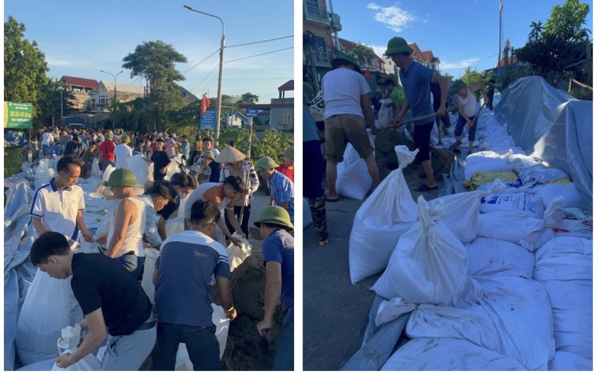 Các lực lượng đã khẩn trương vận chuyển, đóng bao cát, củng cố tuyến đê xung yếu theo phương châm “bốn tại chỗ”, đảm bảo an toàn trước khi nước lũ dâng cao.