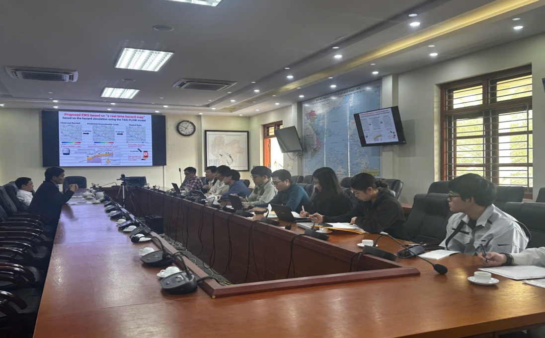 Tại buổi làm việc đoàn công tác đã giới thiệu với cơ quan về một số nghiên cứu, công nghệ cảnh báo nguy cơ quét và sạt lở đất.